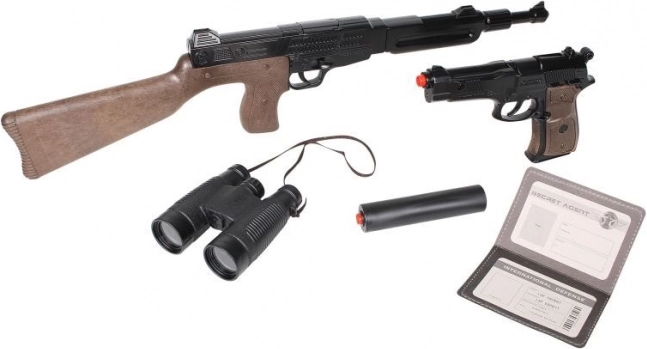 Set tajnog agenta GONHER s metalnom puškom, pištoljem na 8 metaka, dalekozorom i iskaznicom. Sjajna igračka za male špijune od 3 godine naviše.