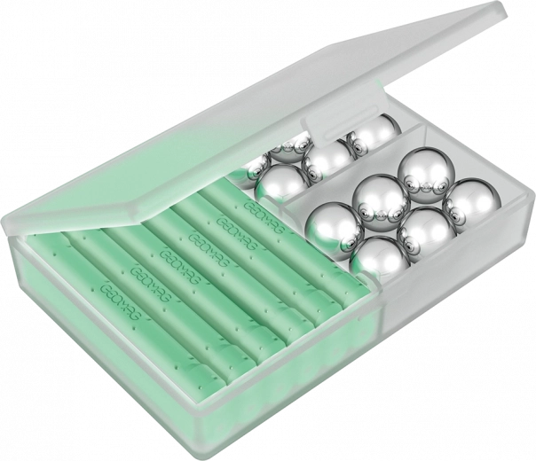 - 20 svjetlećih magnetskih štapića, 20 čeličnih kuglica, 2 stabilna podloška (kvadrat i peterokut) u crnoj boji