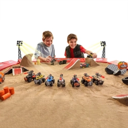 Jednostavno sklopiv kamion s masivnim gumama, detaljnom karoserijom i funkcionalnim lanserom za bitke i kaskaderske trikove.