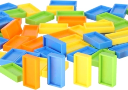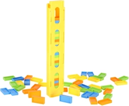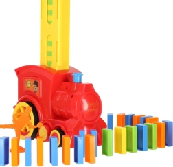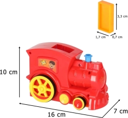 Ova šarena lokomotiva s dozatorom pločica sama polaže domino u jednakim razmacima, a svako polaganje prati zvuk. Djeca mogu lako odabrati smjer vožnje okretanjem dimnjaka i tako stvarati raznolike rute i uzorke. Žive boje i privlačan dizajn potiču pažnju i motiviraju na dugotrajnu igru.