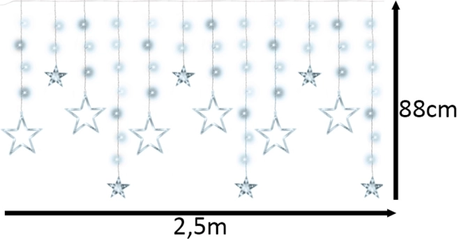 Ugodite svom domu elegantnom LED zavjesom sa zvjezdicama. Nudi hladno bijeli sjaj, 8 načina osvjetljenja i 138 štedljivih LED dioda za čarobnu božićnu atmosferu i svakodnevni dekor. Zahvaljujući mrežnom napajanju i izdržljivom kabelu uživat ćete u pouzdanom, ugodnom svjetlosnom efektu u svakom trenutku.