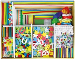 Ogroman izbor materijala u jednom kovčegu omogućuje djeci izradu dekoracija, figurica i školskih projekata – prema mašti, bez ograničenja.