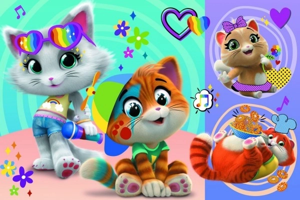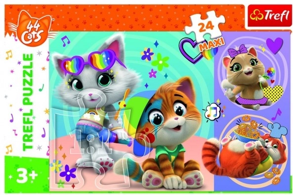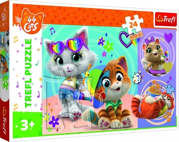 Maxi puzzle 24 dijelova s motivom Sretne mačke 44 CATS. Veliki dijelovi za djecu od 3 godine, dimenzije nakon slaganja 60 × 40 cm. Podržava finu motoriku i zabavu.