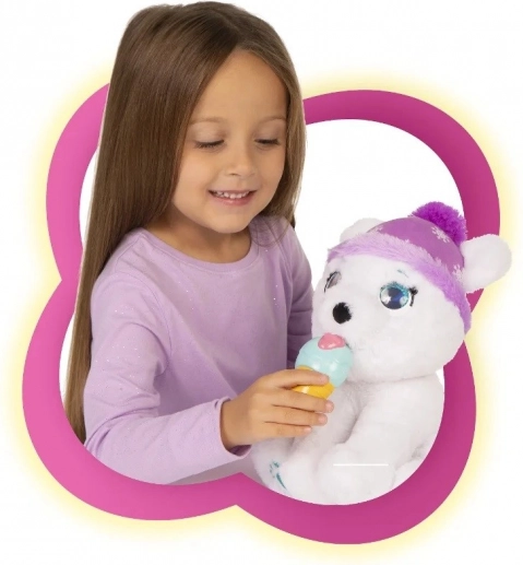 Poluš je interaktivni polarni medvjed koji je vrlo drag. Izrađen je od mekog, ugodnog pliša i ima slatke kristalne oči sa sjajem. Ispušta 10 zvukova! Nakon što pojede sladoled iz seta, počne mu biti loše i trese se od hladnoće. Brinite se o njemu i mazite ga, i odmah će se osjećati bolje!