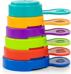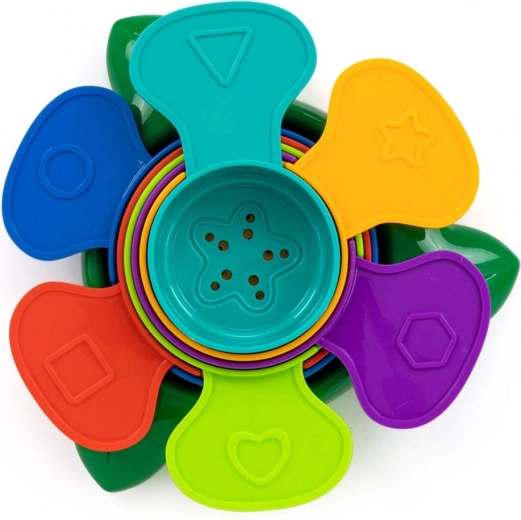 Sklopiva igračka za kadu Flower od Milly Mally. 6 šarenih čašica za slaganje, slaganje u toranj, kao kalupi za pijesak. Svaka od njih ima na dnu otvore, tako da kroz njih možete i prolijevati vodu, prosijavati pijesak za igru, na igralištu ili na plaži. Boje i reljefni oblici na čašicama pomažu pri učenju.