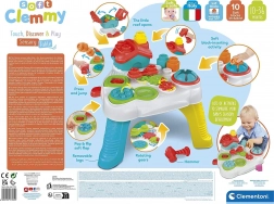 Ovaj senzorni stol za igru Baby Clementoni je izvrstan alat za dječji razvoj. Sa teksturiranom površinom i šarenim elementima omogućuje djeci vježbanje dodira i manuelnih vještina. Stol sadrži kućicu s pokretnim krovom i otvorom za umetanje, gdje djeca mogu čekićem zabijati mekane kocke. Jedinstvene funkcije, poput zupčanika i katapulta za kocke, nude sate interaktivne zabave.