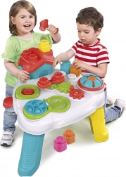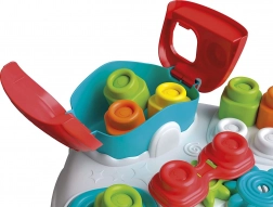 Stol nudi široku paletu aktivnosti za razvijanje dječjih motoričkih vještina, poput zupčanika, katapulta za kocke i mjehurića za pucanje.