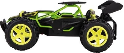 RC auto Carrera Lime Buggy idealan je izbor za početnike i napredne vozače koji traže zabavu u terenu. Laka i izdržljiva konstrukcija u roll-cage stilu, snažni amortizeri i visoki ovjes osiguravaju stabilnost i trakciju na šljunku, travi i zemlji. Precizno doziranje gasa i upravljanja na frekvenciji 2,4 GHz pruža glatku kontrolu bez smetnji.