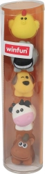Ovaj šareni set donosi djeci omiljene životinjice s farme u sigurnom i ugodno mekom izdanju. Igračke su lagane, lako se drže i stvorene su za vodene radosti i igru na suhom. Poticanje koordinacije oko–ruka, učenja naziva životinja te razvoja rječnika i socijalne igre.