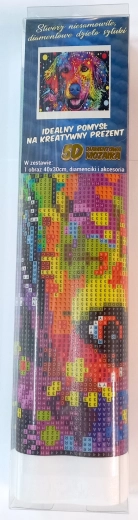 Ovaj kompletni set za dijamantno slikanje idealan je za trenutke odmora i stvaranje s djecom. Pomoću aplikacijskog pera postupno prenosite sitne kamenčiće na predtiskano platno i stvarate efektan, blistav prikaz s modernim motivom apstraktnog psa. Gotovo djelo lako možete uokviriti (okvir nije uključen u pakiranje).