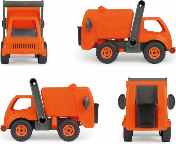 Ekološki kamion za smeće za djecu od 2 godine izrađen od reciklirane plastike s dodatkom drva. Potpuno mehanički, s nagibnom kabinom i osiguračem protiv neželjenog kipanja. Zahvaljujući izdržljivoj izvedbi spreman je za igru u kući i na otvorenom. Dimenzije: 31 × 15 × 19 cm.
