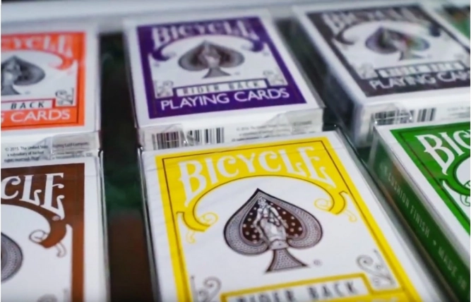 - 9 originalnih špilova BICYCLE u bojama: smeđa, žuta, siva, narančasta, zelena, fuksija, crvena, crna, tirkizna.