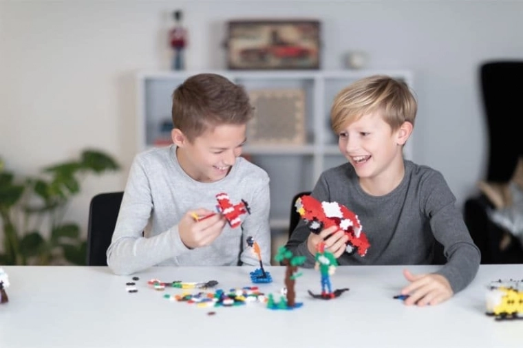 Jednostavan oblik „plus” omogućuje slaganje ravnih mozaika i prostornijih konstrukcija – od životinja i vozila do vlastitih igraćih svjetova.