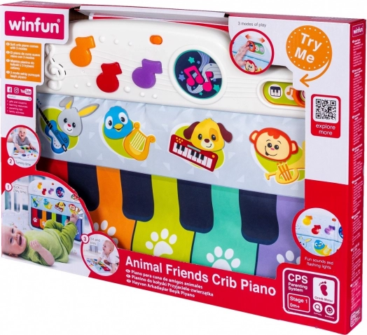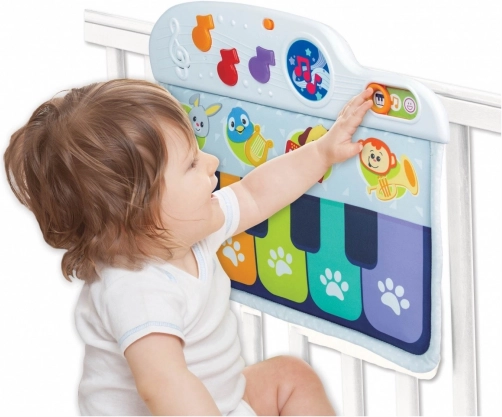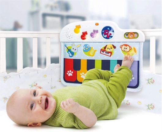 Klavirko za okvir dječjeg krevetića dizajniran je da bude siguran i mekan, a pritom proizvodi ugodne zvukove koji privlače pažnju djeteta. Dijete se može igrati u krevetiću i sjedeći i ležeći, jednostavnim pritiskanjem šarenih notica nožicama. Ova igračka nudi tri načina igre, omogućujući izbor između zvuka klavira i još tri instrumenta: gitare, harfe ili trube.