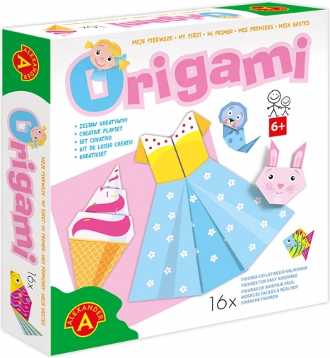 Otkrijte zabavan ulazak u svijet origamija s kreativnim setom Moje prvo origami – haljine brenda Alexander. Pakiranje sadrži 30 šarenih listova s pretisnutim linijama preklopa i slikovnim uputama bez potrebe za čitanjem. Zahvaljujući promišljenom tisku djeca će izraditi originalne haljinice i životinjice, a pritom razvijati finu motoriku, logičko razmišljanje i doživjeti terapijski učinak.