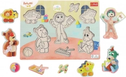 Drvena slagalica s motivom BOBASKI I MIŚ osmišljena je za najmlađu djecu. Čvrsti dijelovi s velikim drvenim gumbima lako se drže i u malim ručicama. Podloga s urezanim oblicima i istovjetnom crno-bijelom grafikom ispod dijelova djetetu olakšava pravilno uparivanje oblika i potiče njegovu samostalnost u igri.