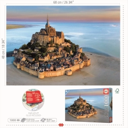 Uživajte u zadovoljstvu opuštanja s ovom prekrasnom slagalicom Mont Saint Michel koja se sastoji od 1000 dijelova. Uključuje BESPLATNO LJEPILO FIX PUZZLE® za jednostavno čuvanje vašeg umjetničkog djela.