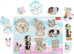 Otkrijte drvene puzzle Ledeni dvorac s 8 izvadivih dijelova s gumbićima, idealnih za male dječje ruke. Šarena grafika i podloga s urezanim oblicima s crno-bijelim obrisima pomažu djeci lako pronaći pravo mjesto. Ova igračka razvija finu motoriku, koordinaciju oko–ruka i učenje oblika – izvrsno već od 18 mjeseci.