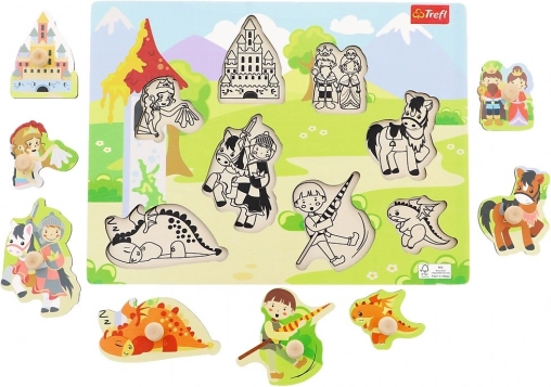 Otkrijte kvalitetne drvene puzzle s motivom dvorca, idealne za najmlađe od 18 mjeseci. Sadrže 8 izvadivih dijelova s drvenim gumbićima na oblikovanoj podlozi. Razvijaju finu motoriku, učenje oblika i koordinaciju oko-ruka. Čvrsti drveni dijelovi zahvaljujući slikama na podlozi lako se slažu.