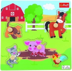 Ova drvena mini slagalica s motivom farme idealna je za djecu od 18 mjeseci. Zahvaljujući drvenim gumbima, dijelovi se udobno drže i lako umeću. Podloga ima urezana mjesta s crno-bijelim obrisima, što djetetu olakšava ispravno sparivanje oblika.