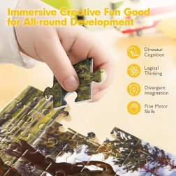 Dvosmjerna slagalica u jajetu iz kolekcije DINO EGGs Collection brenda CubicFun nudi dvostruku zabavu. S jedne strane nalazi se ilustracija pterosaura, dok je na drugoj apstraktni uzorak s fosilima dinosaura.