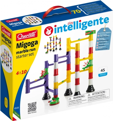 Početni set Migoga nudi raznoliku slagalicu s čvrstim bazama, stupićima i šarenim stazama koje se lako klikaju jedna u drugu. Zahvaljujući sakupljačkim koševima, spiralama, mostovima, mlincima i opružnim spremnicima stvorit ćete glatke i dinamične rute kojima se kuglice spuštaju s kata na kat.