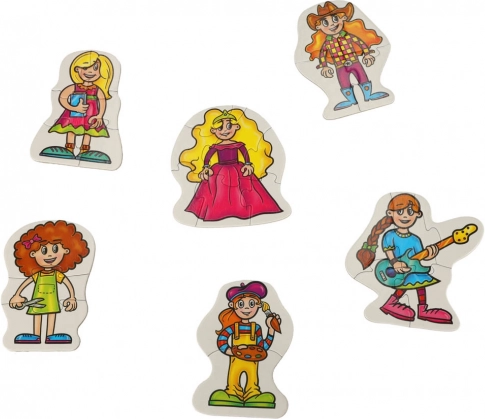 Set sadrži ukupno 27 dijelova podijeljenih u 6 sličica s djevojačkom tematikom. Zahvaljujući debljini od 3 mm dijelovi se lako drže malim ručicama i dobro pristaju jedan uz drugi. Odlično kao poklon i kao aktivnost za zajedničku igru s roditeljima.