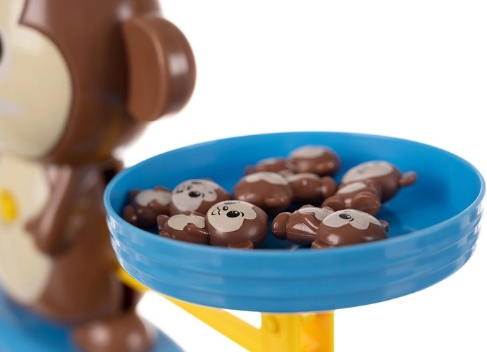 - Balansirajuća vaga s majmunčićem, 19× figurica majmunčića, 54× kartica sa zadacima, 10× brojka