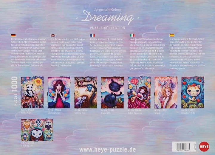 Otkrijte čarobni svijet umjetnika Jeremiaha Ketnera s puzzleom HEYE Dreaming – Stablo želja od 1000 dijelova. Uživajte u kvalitetnom tisku, preciznom izrezu i očaravajućoj ilustraciji inspiriranoj secesijom, japanskom estetikom i anime stilom. Idealno za opuštanje i kao stilski dar.