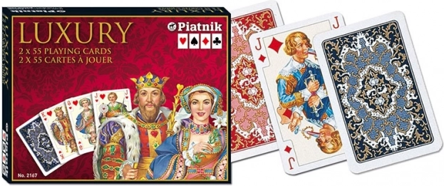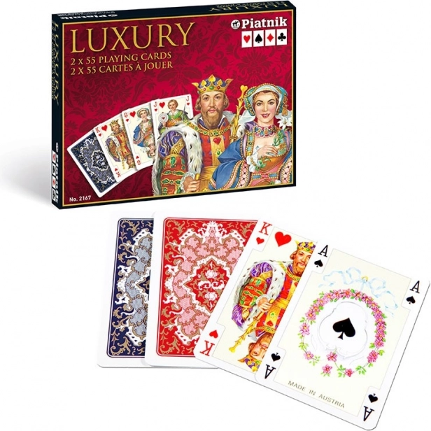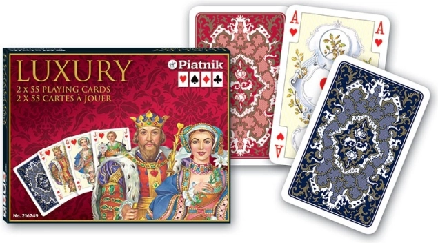 Luksuzne karte Piatnik predstavljaju vrh elegancije zahvaljujući pažljivom obradi i korištenju kvalitetnih materijala. Prednje strane karata krase jedinstvene Piatnikove figure, dok su njihove stražnje strane dizajnirane tako da su estetski privlačne i lako prepoznatljive.<>