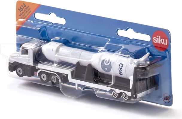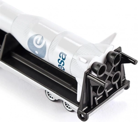 Ovaj precizno izrađen model tegljača s transportnom platformom i raketom ističe se realističnim detaljima koji su tipični za marku Siku. Metalno tijelo u kombinaciji s plastičnim dodacima osigurava trajnost i sigurnost pri igri. Raketu je moguće skinuti s podvozja, a zahvaljujući stabilnom nosaču lako ju je “pripremiti za lansiranje”, što potiče kreativno pripovijedanje.