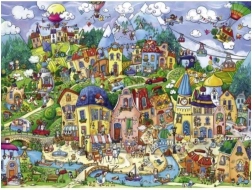 Uronite u razigrani svijet šarenog gradića Happytown. Ova premium slagalica brenda HEYE nudi precizno izrezane dijelove, prekrasnu ilustraciju Rite Berman i udobno slaganje zahvaljujući priloženom plakatu u punoj veličini. Dimenzija složene slike je približno 80 × 60 cm – idealan format za uokvirivanje.