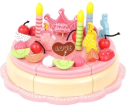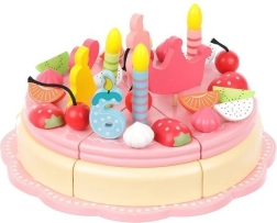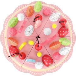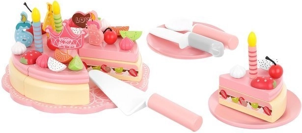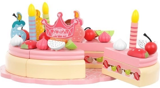 Ovaj kolač izrađen je od kvalitetnog drveta, koje je sigurno za djecu i nudi bezvremensku ljepotu i izdržljivost. Dijelovi kolača povezani su magnetima, što omogućava djeci da „režu“ kolač i poslužuju ga na priloženim tanjurima uz pomoć pribora.
