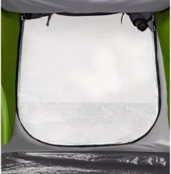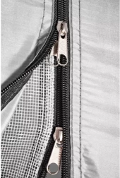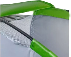Šator je opremljen praktičnom natkrivenošću koja štiti vaše stvari od kiše. Mreža protiv komaraca osigurava zaštitu od insekata i slobodan protok zraka. Pravilnu ventilaciju podržava i gornji otvor s mrežom protiv komaraca koji se može zaštititi od kiše.