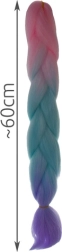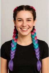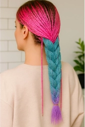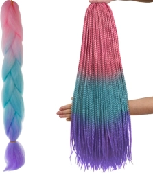 Dajte svojoj frizuri trenutačnu promjenu uz sintetičke ombre pletenice u pastelnom spoju ružičasta–tirkizna–ljubičasta. Laka visokotemperaturna vlakna ugodna su za nošenje, ne opterećuju kosu ni vlasište i izvrsno drže oblik cijeli dan. Idealno za svakodnevni styling, partyje, cosplay i festivale – pričvrstite i skinite kad god želite.
