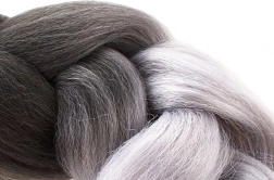 Vlakno otporno na visoke temperature otporno je na UV zračenje i visoke temperature, što omogućuje oblikovanje fenom, peglom ili figarom kao i kod prirodne kose. Specifikacija proizvoda uključuje crno-sivu boju, sintetički materijal i duljinu oko 60 cm.