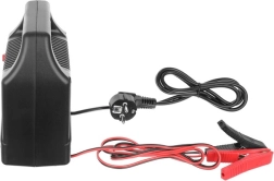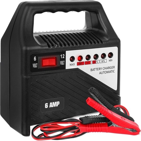 Praktična ručka, kompaktne dimenzije i niska masa olakšavaju skladištenje i prenošenje. Prekidačem odaberete ispravan napon (6 V / 12 V), a robusne kleme osiguravaju siguran kontakt s polovima baterije.