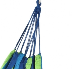 Udobna viseća mreža bez letvica nudi stabilno i sigurno ležanje za jednog ili dva korisnika. Mješavina pamuka i poliestera ugodna je na dodir, a istodobno izdržljiva i jednostavna za održavanje – materijal se može prati u perilici. Zahvaljujući prozračnoj strukturi opuštanje je ugodno i u vrućim danima.