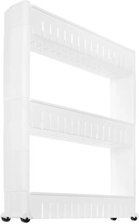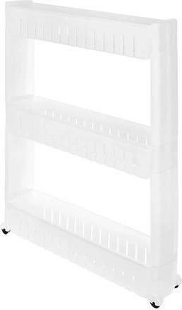 Ova mobilna kuhinjska polica na kotačićima savršena je za iskorištavanje uskih prostora između ormarića. Izrađena je od izdržljive plastike i sadrži tri duboke police za organizaciju potrebnih predmeta.
