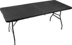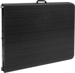 Tražite velik i izdržljiv stol za obiteljske proslave, roštilje ili događanja? Ovaj sklopivi stol duljine 180 cm pruža dovoljno mjesta za posluživanje i udobno sjedenje veće grupe. Ploča od HDPE-a s atraktivnim izgledom drva je čvrsta, elastična i jednostavna za održavanje. Nakon sklapanja stol se pretvara u plosnati kofer koji lako prenesete i odložite.