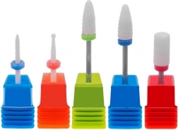 Set od 5 keramičkih nastavaka idealan je za profesionalne salone i kućnu njegu. Keramika ne prenosi toplinu, pa pri radu nema neugodnog peckanja, a ujedno je iznimno izdržljiva i učinkovita. Različiti oblici i stupnjevi granulacije omogućuju precizno uklanjanje materijala, omekšavanje kožice i zaglađivanje površine nokta.
