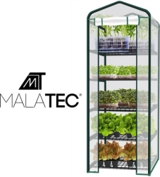 Kompaktan plastenik sa stabilnom metalnom konstrukcijom i 5 metalnih polica idealan je za uzgoj presadnica i začinskog bilja u vrtu, na terasi i balkonu. Jednostavna montaža, zaštita biljaka od vjetra i prizemnog mraza te optimalna mikroklima zahvaljujući čvrsto pričvršćenoj foliji osiguravaju zdrav rast vaših biljaka.
