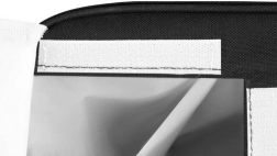Izrađena od poliestera, PVC-a i željeza, torba odolijeva UV zračenju i mrazu, što jamči dug vijek trajanja.