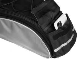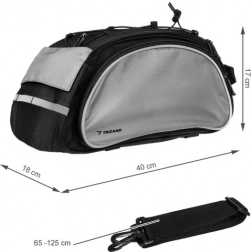 Univerzalna biciklistička torba Trizand je idealna oprema za svakog biciklista. Dizajnirana je tako da se lako postavlja na većinu modela bicikala zahvaljujući svom čvrstom pričvršćivanju na čičak. Torba je izrađena od izdržljivog poliesterskog materijala s PU i PVC premazom, što osigurava njezinu dugovječnost.