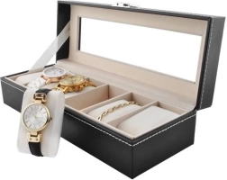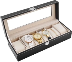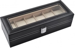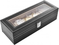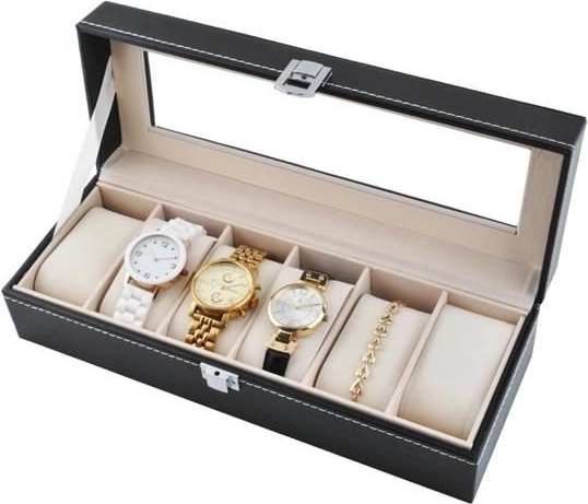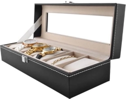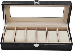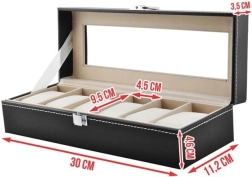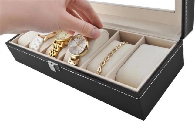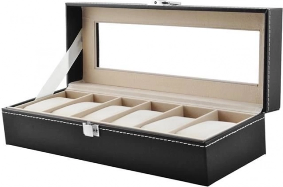 Predstavljamo vam elegantni organizator za satove, koji se diči sa 6 zasebnih pretinaca. Ovaj organizator nije namijenjen samo za satove, nego se u njega može sigurno pohraniti i drugi nakit, zahvaljujući mekanom materijalu iznutra, koji štiti od ogrebotina.