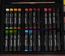 Oprema uključuje 60 voštanih pastela, 24 uljne pastele, 24 drvene bojice, 24 akvarel boje, 2 kista, šiljilo, 8 brusnih papira, gumicu, olovke HB i 2B, uz to blok za crtanje i bojanke. Sve je pregledno posloženo u pretincima i ladici za maksimalnu udobnost.