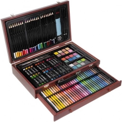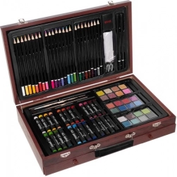 Ovaj univerzalan likovni set izvrstan je izbor i za početnike i za napredne. Zahvaljujući širokoj paleti materijala isprobat ćete razne tehnike – od crteža olovkom i pastelama do akvarelnog slikanja. Čvrst drveni kofer štiti sadržaj i održava red, tako da se možete usredotočiti samo na stvaranje.