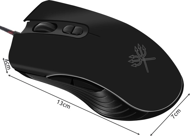 SPECIFIKACIJE - boja: crna; softver: Plug & Play; pozadinsko osvjetljenje miša: da; senzor: optički; klizači: teflon; promjenjivo osvjetljenje: da; profiliranje miša: dešnjak; završna obrada: mat - ABS; programabilne tipke: da; broj tipki 7; razlučivost: 1200-2400-4800-7200 DPI; trajnost: 5 milijuna klikova; priključak: USB 2.0; duljina kabela: 135 cm; opleteni kabel: da; radni napon: DC 5V / 100 mA; sistemski zahtjevi: XP / VISTA / 7/8/10 / Vista / Mac OS ili noviji; dimenzije: 13/7/4 cm; težina: 0,124 kg; težina u pakiranju: 0,162 kg.