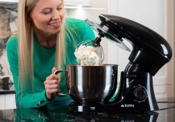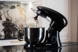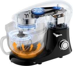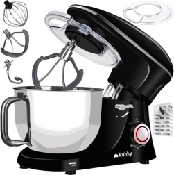 Ruhhy planetarni kuhinjski robot s robusnim protukliznim nogama osigurava stabilnost tijekom rada. Zahvaljujući metalnom planetarnom sustavu i tri različita nastavka - kuka, metla i miješalica - možete savršeno obraditi sve sastojke i postići optimalne rezultate.