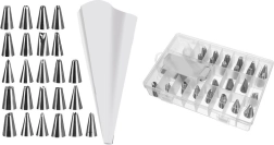 Uređaj je izrađen od visokokvalitetnih materijala, kao što su nehrđajući čelik i ABS, što osigurava dugi vijek trajanja. Također je uključen dekorativni pekarski torba s 24 nastavka, koji proširuje kreativne mogućnosti u kuhinji.